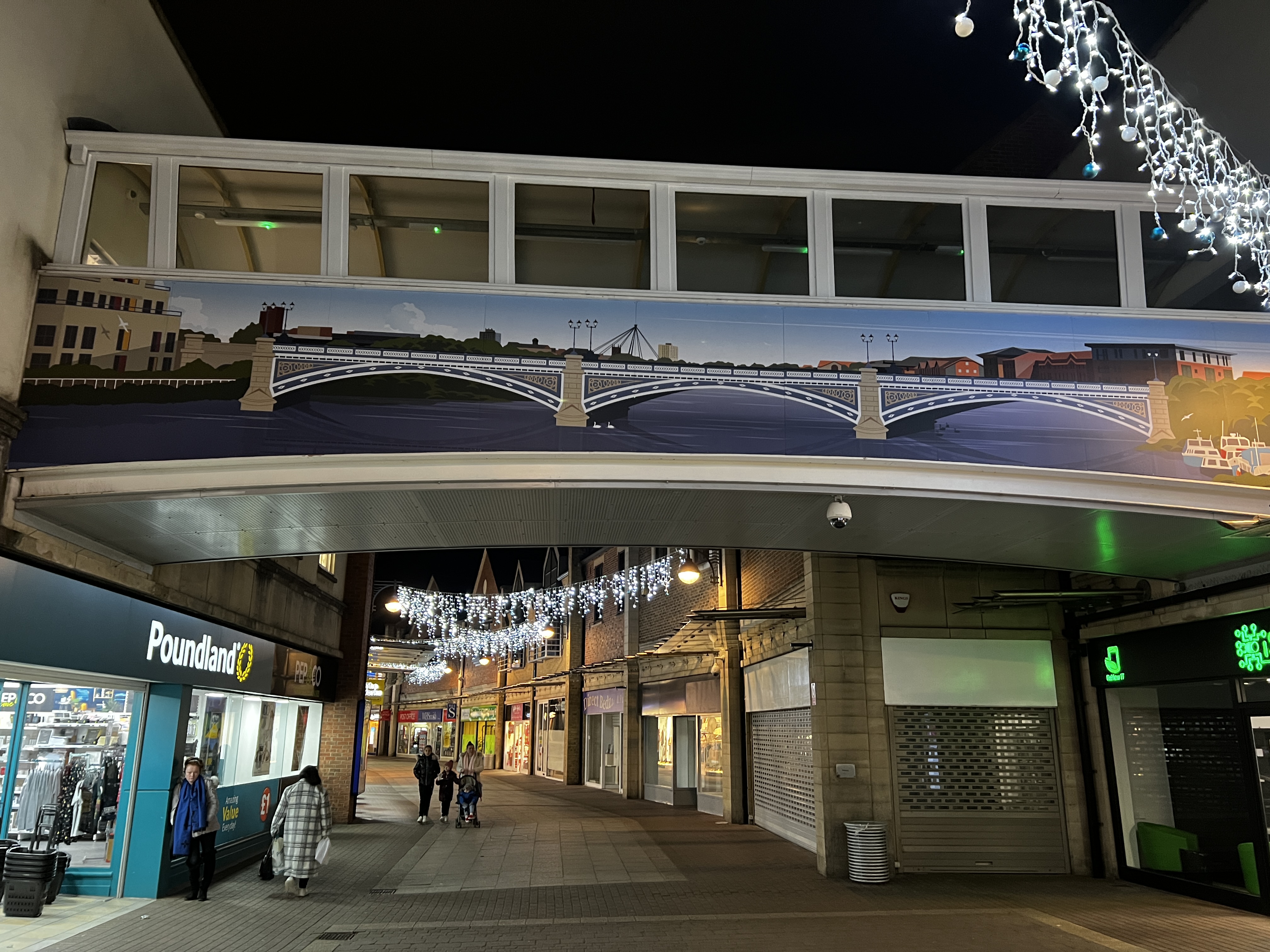 The three bridges in Stockton shopping centre are both iconic and loved by the people of Stockton. Using artworks provided this was probably one of the most difficult installs we have ever undertaken.
