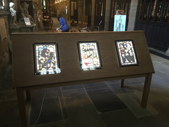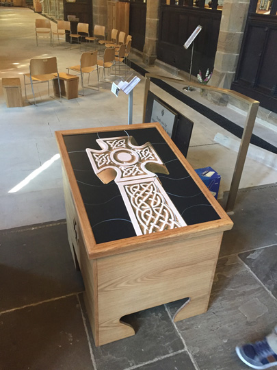 Above: these very stylish units are actually jigsaws. Created for the cathedral to highlight the complexity of the stonework, stained glass windows and woodwork. These jigsaws draw your attention to the final detail within the cathedral.